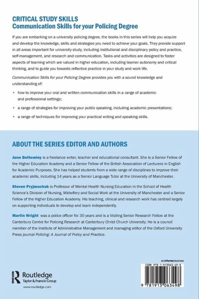 Jane Bottomley is a freelance writer, teacher and educational consultant. She is a Senior Fellow of the Higher Education Academy and a Senior Fellow of BALEAP, the global forum for English for Academic Purposes practitioners. She has helped students from a wide range of disciplines to improve their academic skills and achieve their study goals, including 14 years as a Senior Language Tutor at the University of Manchester. Jane is the editor of the Critical Study Skills series, which covers nursing, education and social work. This series includes books on critical thinking, and all books in the series are characterised by a critical approach to study. You can visit her website at: https://janebottomley.co.uk/ Martin Wright was a police officer for 30 years and is now an Honorary Professor at the Centre for International Law Enforcement at Nottingham Trent University. He currently holds several other positions: council member of the Institute of Administrative Management, visiting Senior Research Fellow at the Canterbury Centre for Policing Research at Canterbury Christ Church University and managing editor of Oxford University Press' Policing: A Journal of Policy and Practice. Steven Pryjmachuk is Professor of Mental Health Nursing Education in the School of Health Science's Division of Nursing, Midwifery and Social Work at the University of Manchester and a Senior Fellow of the Higher Education Academy. His teaching, clinical and research work has centred largely on supporting and facilitating individuals - be they students, patients or colleagues - to develop, learn or care independently. In December 2014, Steven was elected as vice Chair (2015-16) and Chair (2017-18) of Mental Health Nurse Academics UK, an organisation representing 65 Higher Education Institutions providing education and research on mental health nursing.