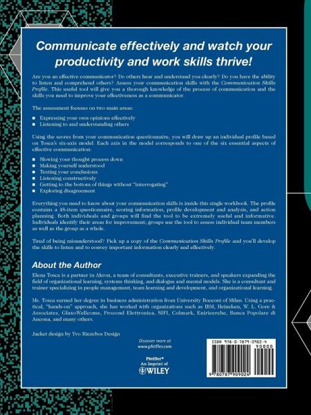 Everything you need to improve your communication skills is inside this single workbook. The profile contains a 48-item questionnaire, scoring information, profile development and analysis, and action planning. Both individuals and groups will find the tool to be extremely useful and informative. Individuals identify their areas for improvement; groups use the tool to assess both individual team members as well as the group as a whole.Tired of being misunderstood? Pick up your copy of the Communication Skills Profile today. You'll develop the skills to listen and convey important information clearly and effectively!