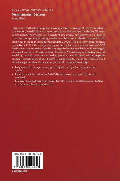 The new edition reflects the emergence of a variety of new services and systems. It continues to cover the concepts of probability, random variables, and stochastic processes in full, but brings them up to speed for the modern context. The book now features a new appendix on LTE, fully revamped of figures and tables, new information on AM-VSB Modulation, new examples related to new digital television standards, and a thoroughly revamped chapter on Mobile Cellular Telephony. All major topics including channel modeling, channel characteristics, and propagation are still covered, with an emphasis on simple models.
