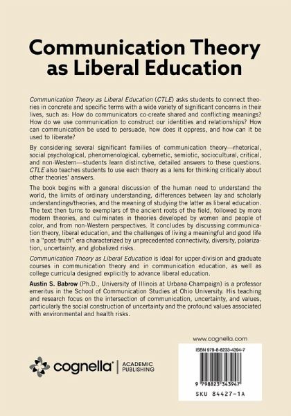 Communication Theory as Liberal Education (CTLE) asks students to connect theories in concrete and specific terms with a wide variety of significant concerns in their lives, such as: How do communicators co-create shared and conflicting meanings? How do we use communication to construct our identities and relationships? How can communication be used to persuade, how does it oppress, and how can it be used to liberate? By considering several significant families of communication theory-rhetorical, social psychological, phenomenological, cybernetic, semiotic, sociocultural, critical, and non-Western-students learn distinctive, detailed answers to these questions. CTLE also teaches students to use each theory as a lens for thinking critically about other theories' answers. The book begins with a general discussion of the human need to understand the world, the limits of ordinary understanding, differences between lay and scholarly understandings/theories, and the meaning of studying the latter as liberal education. The text then turns to exemplars of the ancient roots of the field, followed by more modern theories, and culminates in theories developed by women and people of color, and from non-Western perspectives. It concludes by discussing communication theory, liberal education, and the challenges of living a meaningful and good life in a "post-truth" era characterized by unprecedented connectivity, diversity, polarization, uncertainty, and globalized risks. Communication Theory as Liberal Education is ideal for upper-division and graduate courses in communication theory and in communication education, as well as college curricula designed explicitly to advance liberal education.