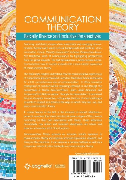 Featuring contributed chapters from established and emerging communication theorists with varied cultural backgrounds and identities, Communication Theory: Racially Diverse and Inclusive Perspectives decenters traditional views of communication by highlighting perspectives from the global majority. The text deviates from a white-colonial-normative theoretical core to provide students with a more holistic exploration of communication theory. The book helps readers understand how the communicative experiences of marginalized groups represent important theoretical frames necessary for a full, comprehensive view of communication. It offers innovative conceptions of communication theorizing centered in and through the perspectives of African American/Black, Latinx, Asian American, and Indigenous/First Nations people. Through the presentation of canonized theories alongside innovative, cutting-edge theories, the text challenges students to expand and enhance the ways in which they see, use, and apply communication theory. A unique feature of the text is the inclusion of storied reflections-personal narratives that reveal scholars at various stages of their careers ruminating on their own experiences with theory. These reflections demonstrate how ethnic and racialized standpoints can inform and advance scholarship within the discipline. Communication Theory presents an inclusive, holistic approach to communication theory and inspires continued exploration, research, and theory in the discipline. It can serve as a primary textbook as well as a companion volume to other textbooks on communication theory.