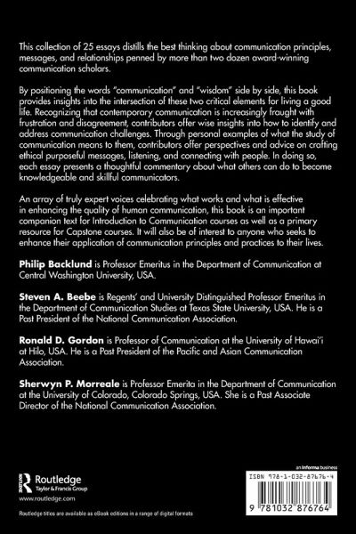 By positioning the words "communication" and "wisdom" side by side, this book provides insights into the intersection of these two critical elements for living a good life. Recognizing that contemporary communication is increasingly fraught with frustration and disagreement, contributors offer wise insights into how to identify and address communication challenges. Through personal examples of what the study of communication means to them, contributors offer perspectives and advice on crafting ethical purposeful messages, listening, and connecting with people. In doing so, each essay presents a thoughtful commentary about what others can do to become knowledgeable and skillful communicators.