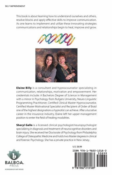 This book is about learning how to understand ourselves and others, resolve blocks and apply effective skills to improve communication. As one learns to implement and utilize these innovating strategies communications and relationships begin to heal, improve and grow.
