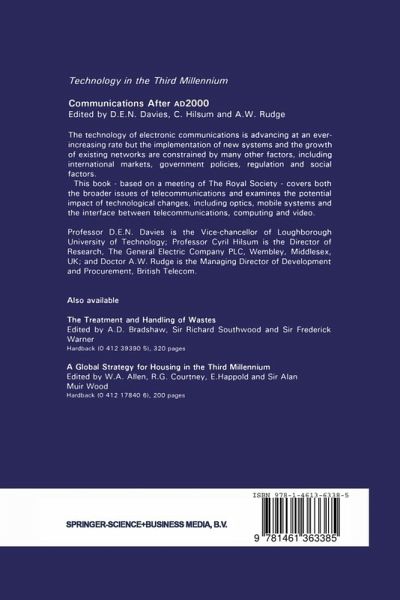 The Royal Society has initiated a series of meetings to discuss the effect advances in technology will have on our way of life in the next century. The two previous meetings have been concerned with housing and waste treat ment. The subject of the third meeting, communications, is no less critical to life, but it offers particular problems and uncertainties, especially in the forecasting of future trends. Indeed, some have doubted if there can be profitable debate on long-term development in such a fast-moving field. The importance of the topic justifies an attempt, and the reader will judge whether the authors have met the challenge. Communications today bears little resemblance to that of the 1970s. Then we knew about satellites and optical fibres, and we had seen lasers and silicon chips, but most of us could never imagine the potential of the new technologies within our grasp. We had also not assessed the thirst of the popUlation for more and better ways of talking and writing to each other. It was the combination of market need and technical capability that created the com munications revolution.
