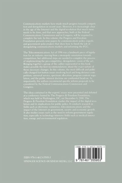 Communications markets have made much progress towards competition and deregulation in recent years. However, it is increasingly clear, in the age of the Internet and the digital revolution, that much more needs to be done, and that new approaches, both at the Federal Communications Commission and in Congress, will be required to complete the task. In this volume, the Progress and Freedom Foundation presents nine papers by communications policy experts and government policymakers that show how to finish the job of deregulating communications markets and reforming the FCC.