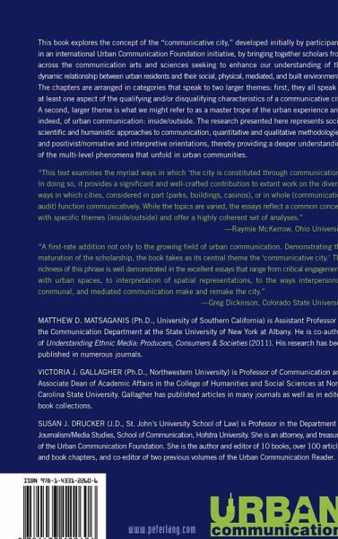 «A first-rate addition not only to the growing field of urban communication. Demonstrating the maturation of the scholarship, the book takes as its central theme the 'communicative city.' The richness of this phrase is well demonstrated in the excellent essays that range from critical engagements with urban spaces, to interpretation of spatial representations, to the ways interpersonal, communal, and mediated communication make and remake the city.» (Greg Dickinson, Colorado State University)
