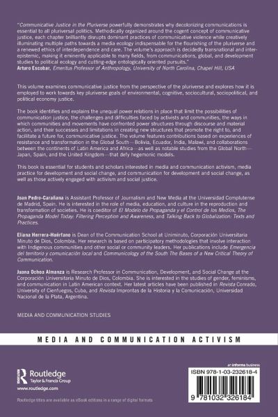 This volume examines communicative justice from the perspective of the pluriverse and explores how it is employed to work towards key pluriverse goals of environmental, cognitive, socio-cultural, socio-political, and political economy justice.