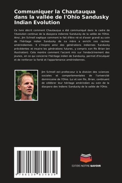Ce livre décrit comment Chautauqua a été communiqué dans le cadre de l'évolution continue de la diaspora indienne Sandusky de la vallée de l'Ohio. Ainsi, Jim Schnell explique comment le fait d'être né et d'avoir grandi au sein de l'héritage indien Sandusky de sa mère a enrichi ses racines amérindiennes. Il s'inspire ainsi des générations indiennes Sandusky précédentes et inspire les générations futures, y compris son fils Brian (en illustration). Cela montre comment l'accent mis sur l'endoctrinement des jeunes, en ce qui concerne l'héritage indien de Sandusky, permet d'inculquer et de renforcer la fierté et l'appartenance amérindiennes.