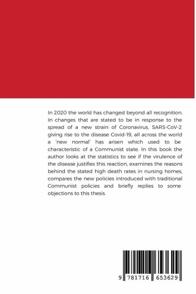 In 2020 the world has changed beyond all recognition. In changes that are stated to be in response to the spread of a new strain of Coronavirus, SARS-CoV-2 giving rise to the disease Covid-19, all across the world a 'new normal' has arisen which used to be characteristic of a Communist state. In this book the author looks at the statistics to see if the virulence of the disease justifies this reaction, examines the reasons behind the stated high death rates in nursing homes, compares the new policies introduced with traditional Communist policies and briefly replies to some objections to this thesis.