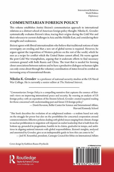 This volume establishes Amitai Etzioni's communitarian approach to international relations as a distinct school of American foreign policy thought. Nikolas K. Gvosdev systematically evaluates Etzioni's ideas, tracing their origins during the Cold War and their relevance to current challenges in Asia and the Middle East, and considering their strengths and weaknesses. Etzioni agrees with liberal internationalists who believe that traditional notions of state sovereignty are eroding and that a new set of global norms is required. However, he argues against the imposition of Western policies on the rest of the world, which he sees as a recipe for conflict which the United States cannot afford. He warns against the post-Cold War triumphalism, arguing that it undercuts efforts to find necessary common ground with both Russia and China. An enduring and stable global architecture cannot be maintained unless it appeals to the interests of a broad community of nations. The trust that is needed for forming closer associations between nations and to have a productive dialogue on human rights can only come about through the voluntary coordination of states forced to combat an increasing array of transnational threats.