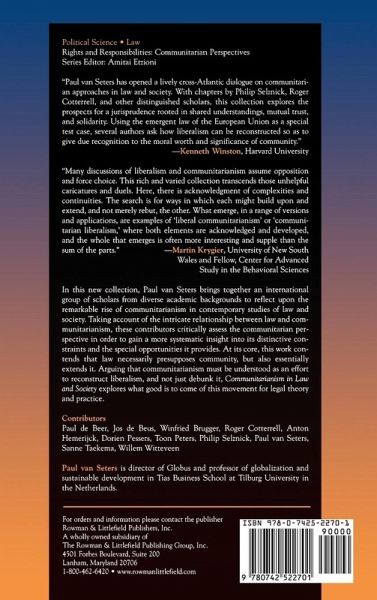 In this new collection of essays, Paul van Seters brings together an international group of scholars from diverse academic backgrounds to reflect upon the remarkable rise of communitarianism in contemporary studies of law and society. These essays critically assess the communitarian perspective in order to gain a more systematic insight into its distinctive constraints and the special opportunities it provides.