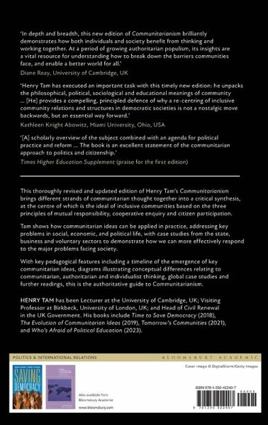 This thoroughly revised and updated edition of Henry Tam's Communitarianismbrings different strands of communitarian thought together into a critical synthesis, at the centre of which is the ideal of inclusive communities based on the three principles of mutual responsibility, cooperative enquiry, and citizen participation. Tam shows how communitarian ideas can be applied in practice, addressing key problems in social, economic, and political life, with case studies from the state, business, and voluntary sectors to demonstrate how we can more effectively respond to the major problems facing society. With key pedagogical features including a timeline of the emergence of key communitarian ideas, diagrams illustrating conceptual differences relating to communitarian, authoritarian and individualist thinking, and a selection of global case studies and further readings, this is the authoritative guide to the theory and practice of Communitarianism.