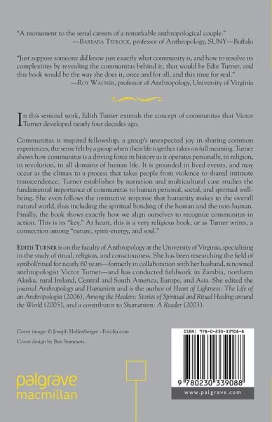 "Just suppose someone did know just exactly what community is, and how to resolve its complexities by revealing the communitas behind it, that would be Edie Turner, and this book would be the way she does it, for once and for all, and this time for real." Roy Wagner, professor of Anthropology, University of Virginia