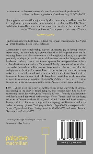 "Just suppose someone did know just exactly what community is, and how to resolve its complexities by revealing the communitas behind it, that would be Edie Turner, and this book would be the way she does it, for once and for all, and this time for real." Roy Wagner, professor of Anthropology, University of Virginia