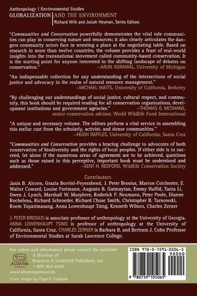 J. Peter Brosius is associate professor of anthropology at the University of Georgia. Anna Lowenhaupt Tsing is professor of anthropology at the University of California, Santa Cruz. Charles Zerner is the Barbara B. and Bertram J. Cohn Professor of Environmental Studies at Sarah Lawrence College and co-director of the Environmental Studies/Science, Technology and Society Colloquium Series.