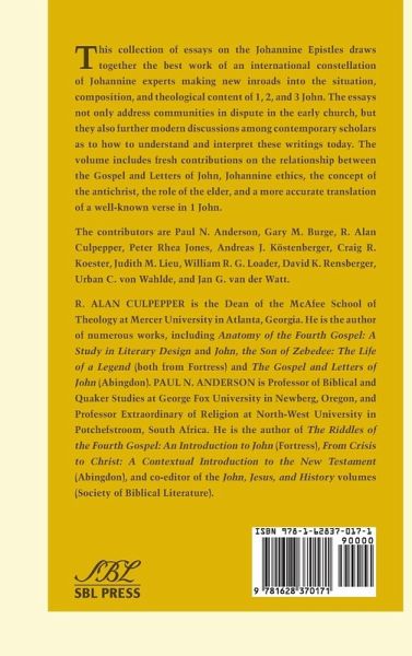 This collection contains cutting-edge treatments of important issues pertaining to the Johannine Epistles, including contributions on the relationship between the Gospel and the letter of John, Johannine theology and ethics, the concept of the Antichrist, and the role of the elder.