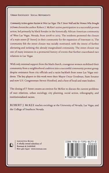 This book chronicles Robert J. McKee's active participation in a successful protest action, led primarily by black females in the historically African American community of West Las Vegas, Nevada, from 2008-2013. The residents protested the closure of a main street (F Street) in their community for the expansion of Interstate 15. The community felt the street closure was racially motivated, with the intent of further alienating and isolating this already marginalized community. The street closure was one of many instances in a protracted history of events that further exacerbated race relations in Las Vegas. With only minimal support from the black church, courageous women mobilized their community from a neighborhood coalition into a successful community protest group, despite resistance from city officials and a racist backlash from some Las Vegas residents. The key players in this work were then-Mayor Oscar Goodman, State Senator and now U.S. Congressman Steven Horsford, and a host of local and state leaders. The closing of F Street creates an environ for McKee to discuss the current problems of race relations, urban sociology, city planning, social action, ethnography, and institutionalized racism.