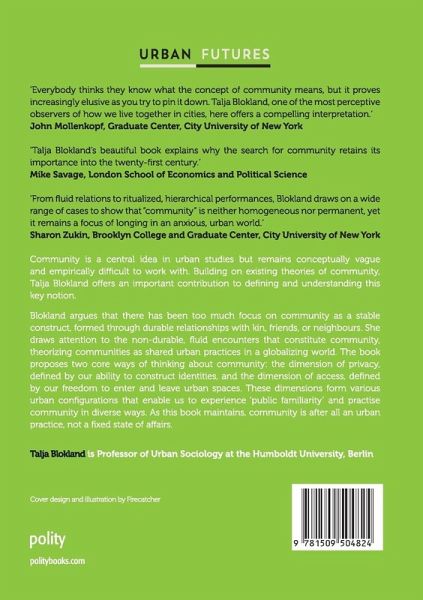 Community is a central idea in urban studies but remains conceptually vague and empirically difficult to work with. Building on existing theories of community, Talja Blokland offers an important contribution to defining and understanding this key theme.