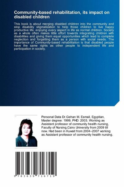 This book is about merging disabled children into the community and stop disability stigmatization to help those children to live happy productive life, enjoying every aspect in life as normal children. Society as a whole often makes little effort towards integrating children with disabilities and giving them equal opportunities which lead to complete neglection and forgetting them as a person with social needs. The importance of Community-based rehabilitation is that disabled people have the same rights as other people to independent life and participation in society.
