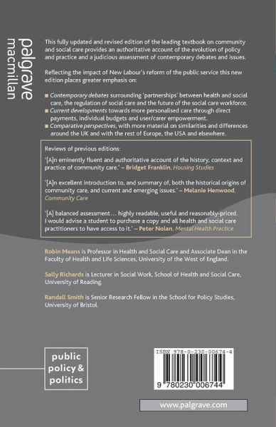 This new edition has been updated to reflect recent shifts in community and social care whilst still providing the authoritative account of its historical development. Particular attention is paid to partnerships between health and social care, the regulation of social care, direct payments and individual budgets and user/carer empowerment.