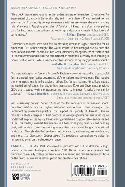 Daniel J. Phelan, Ph.D. has served as president and CEO of Jackson College, Michigan since April 2001. He has extensive experience and training in community college governance and has served on, and held leadership positions on, a wide variety of public and private organization boards. (Jackson College utilizes the Policy Governance Model created by John Carver).