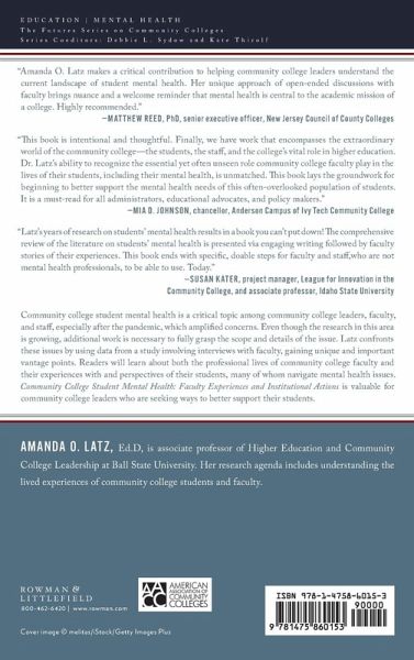 This book is focused on community college student mental health, which is a critical topic among community college leaders, faculty, and staff.