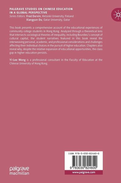 This book presents a comprehensive account of the educational experiences of community college students in Hong Kong, analyzed through a theoretical lens that intersects sociological theories of inequality, including Bourdieu's concept of cultural capital. The student narratives featured in this book reveal the interweaving personal, academic, and professional considerations and challenges affecting their individual choices in the pursuit of higher education. Chapters also reveal why, despite the relative expansion of educational opportunities, the class gap in higher education persists.