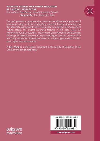 This book presents a comprehensive account of the educational experiences of community college students in Hong Kong, analyzed through a theoretical lens that intersects sociological theories of inequality, including Bourdieu's concept of cultural capital. The student narratives featured in this book reveal the interweaving personal, academic, and professional considerations and challenges affecting their individual choices in the pursuit of higher education. Chapters also reveal why, despite the relative expansion of educational opportunities, the class gap in higher education persists.