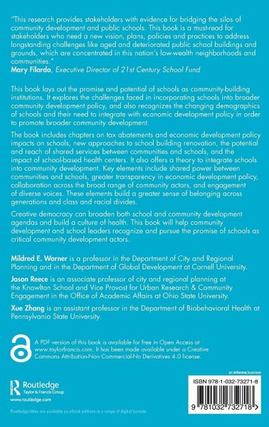Part 1 Introduction: Schools and Community Development 1. Community Development and Schools: Interrelationships, Conflict, and Power 2. Youth Demographic Trends and Equity Considerations Part 2 Financial and Physical: Economic Development Policy and Schools 3. The Cost of Tax Incentives to Public Schools 4. Urban Schools and the Growth Machine 5. School-Centered Community Development: Lessons from Baltimore's 21st Century School Buildings Program Part 3 Institutional and Social: Opportunities for Collaboration and Innovation 6. Joint Use Between Communities and Schools: Unpacking Dimensions of Power 7. Joint Use Service Delivery in New York State School Districts 8. School-Based Health Centers and Rural Community Health Part 4 Conclusion 9. Conclusion: A Broader Vision of Community Development, Schools, and Power