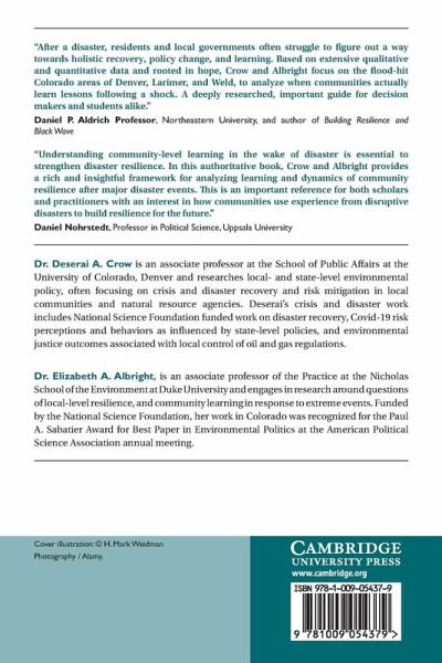 Section I. Introduction 1. Introduction to Disasters, Change, and Community-Level Resilience 2. Colorado's 2013 Floods: The Disaster that Primed Community-Level Learning Section II. Damage and Resources 3. Disaster Damage, Severity, and Extent 4. Pre-Disaster Capacity and Post-Disaster Resources for Recovery Section III. Individual Beliefs 5. Worldviews, Risk Perceptions, and Causal Beliefs: How Individuals Experience Disasters 6. Trust in Government and Support for Policy Action Section IV. Individual & Group Engagement 7. Stakeholder Engagement and Community-Level Disaster Recovery towards Resilience 8. Intergovernmental Relationships and Successful Disaster Recovery and Learning Section V. Connections, Conclusions and Recommendations 9. A Framework for Understanding Community-Level Learning in the Aftermath of Disaster 10. Examining Community-Scale Disaster Recovery and Resilience Beyond Colorado 11. Conclusions, Recommendations, and Future Directions.