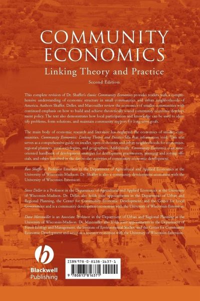 This Complete revision of Dr. Shaffer's classic Community Economics provides readers with a comprehensive understanding of economic structure in small communities and urban neighborhoods of America. Authors Shaffer, Deller, and Marcouiller review the economics of smaller communities with continued emphasis on how to build and achieve theoretically sound community economic development policy. The text also demonstrates how local participation and knowledge can be used to identify problems, form solutions, and maintain community support for long-term goals. The main body of economic research and literature has neglected the economics of smaller communities. Community Economics: Linking Theory and Practice fills that information void. This text serves as a comprehensive guide on smaller, open economies and urban neighborhoods for economists, regional planners, rural sociologists, and geographers. Additionally, Community Economics is an issue-oriented handbook of development strategies for development practitioners, planning and zoning officials, and others involved in the ay-to-day activities of community economic development.