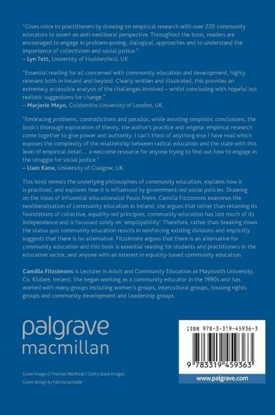 "Fitzsimons has expertly documented the damage wrought by neoliberal policies on the collective, equality-based ethos of community education in Ireland. Her groundbreaking, accessible analysis is essential reading for those interested in community education and its future. In Ireland and abroad, students, educators, and policymakers will benefit from paying it close attention." (Thomas Murray, Adult Education Quarterly, Vol. 68 (3), 2018)