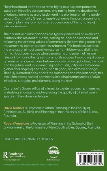 The distinctive planned spaces are typically enclosed on every side, hidden within residential blocks, serving as local pocket parks and reflecting the evolving values of community life from the garden city movement to contemporary new urbanism. This book resuscitates the enclosed, almost secretive reserve from history as a distinctive form of local open space whose problems and potentialities are relevant to many other green community spaces. In so doing, it opens up even wider connections between localism and globalism, the past and the future, and for connecting community initiatives to broader global challenges of cohesion, health, food, and climate change. This fully illustrated book charts the outcomes and implications of this evolution across several continents, injecting human stories of civic initiatives, struggles and triumphs along the way.