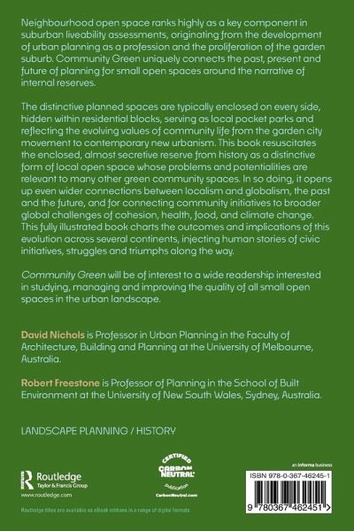The distinctive planned spaces are typically enclosed on every side, hidden within residential blocks, serving as local pocket parks and reflecting the evolving values of community life from the garden city movement to contemporary new urbanism. This book resuscitates the enclosed, almost secretive reserve from history as a distinctive form of local open space whose problems and potentialities are relevant to many other green community spaces. In so doing, it opens up even wider connections between localism and globalism, the past and the future, and for connecting community initiatives to broader global challenges of cohesion, health, food, and climate change. This fully illustrated book charts the outcomes and implications of this evolution across several continents, injecting human stories of civic initiatives, struggles and triumphs along the way.