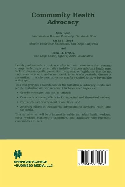 This valuable text will be of interest to public and urban health workers, social workers, community organizers, and legislators who represent communities in need.