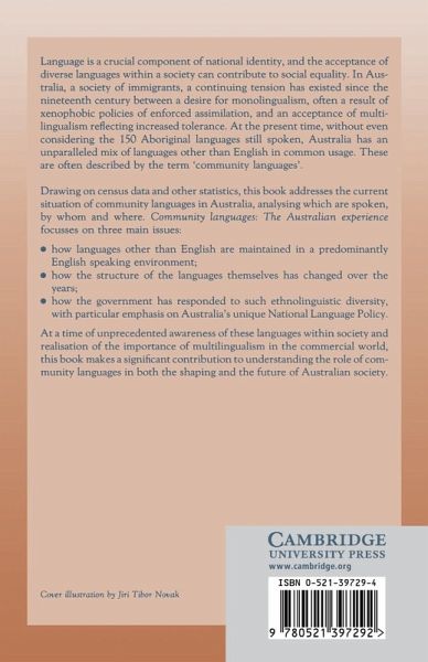 Without even considering the 150 Aboriginal languages still spoken, Australia has an unparalleled mix of languages other than English in common usage, languages often described by the term 'community'. Drawing on census data and other statistics, this book addresses the current suitation of community languages in Australia, analysing which are spoken, by whom, and whereabouts. It focuses on three main issues: how languages other than English are maintained in an English speaking environment, how the structure of the languages themselves changes over time, and how the government has responded to such ethnolinguistic diversity. At a time of unprecedented awareness of these languages within society and a realisation of the importance of mutlilingualism in business, this book makes a significant contribution to understanding the role of community languages in shaping the future of Australian society.