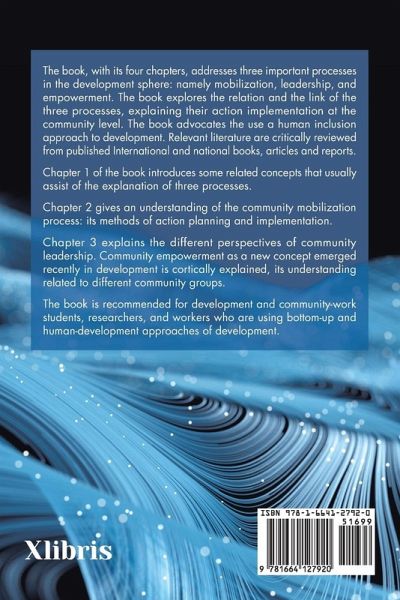 The book, with its four chapters, addresses three important processes in the development sphere: namely mobilization, leadership, and empowerment. The book explores the relation and the link of the three processes, explaining their action implementation at the community level. The book advocates the use a human inclusion approach to development. Relevant literature are critically reviewed from published International and national books, articles and reports. Chapter 1 of the book introduces some related concepts that usually assist of the explanation of three processes. Chapter 2 gives an understanding of the community mobilization process: its methods of action planning and implementation. Chapter 3 explains the different perspectives of community leadership. Community empowerment as a new concept emerged recently in development is cortically explained, its understanding related to different community groups. The book is recommended for development and community-work students, researchers, and workers who are using bottom-up and human-development approaches of development.