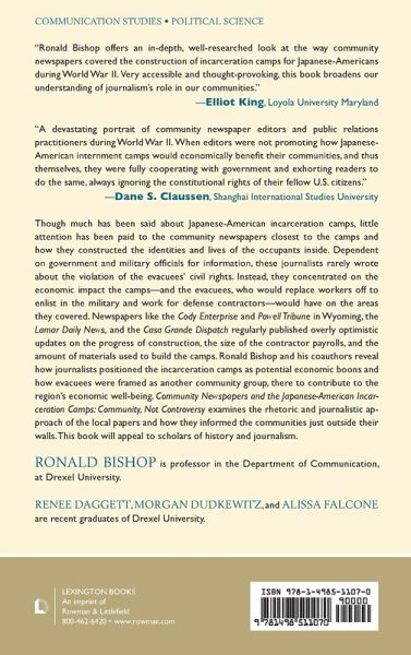 Community Newspapers and Japanese-American Incarceration Camps critically examines the tendency of journalists in all corners of the craft to be timid in times of war, precisely when the public’s need for accurate information is so pressing.