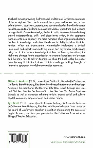This book aims at providing the framework and the tools for the transformation of the workplace. The core framework here proposed to teachers, school administrators, counselors, parents, and education leaders from kindergarten to college consists of building domestic knowledge. Unearthing and fostering an organization's own knowledge, the book posits, translates into collectively shared understandings, skills, and dispositions which, in the aggregate translates into local capacity. The more members of an organization become involved in knowledge production, the denser its ability to deliver its stated mission. When an organization systematically implements a critical, intentional, and collective action to dig into its own day-to-day practices and brings up to the surface knowledge that has not been systematized, the higher the chances for the organization to create a shared sense of purpose and the know-how to deliver its promises. Thus, the book walks the reader from the very first to the last step of this knowledge making through an innovative approach to collaborative action research.