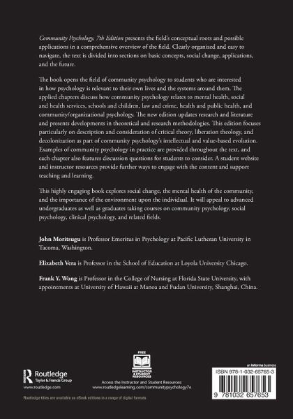 Community Psychology, 7th Edition presents the fieldâ s conceptual roots and possible applications in a comprehensive overview of the field. Clearly organized and easy to navigate, the text is divided into sections on basic concepts, social change, applications and the future.