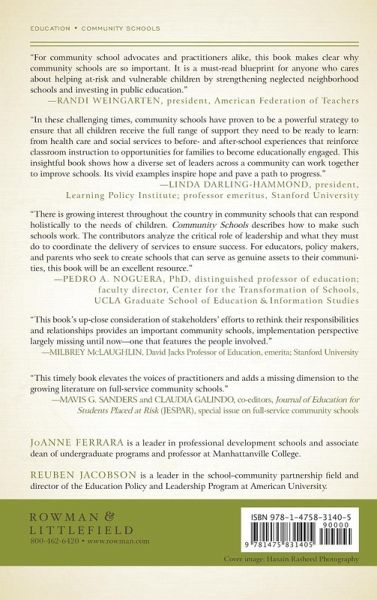 Dedication Foreword: Dr. Jeannie Oakes, Presidential Professor of Education Equity Emeritus, UCLA, and Senior Fellow in Residence, Learning Policy Institute Acknowledgements Introduction JoAnne Ferrara and Reuben Jacobson The Community Schools Movement: Emergence and Growth Trends Reuben Jacobson The Imagineers of Community School LeadershipLynda Tredway, Institute for Educational Leadership, Matthew Militello, East Carolina University Community School Teacher Leaders Enhance LearningEllen Pais, Sarah Hurst, Deborah Lowe, Jessica Wadle, Jennifer Carey Rosenbaum, Los Angeles Education Partnership, HAAT Re-imagining Teacher Preparation: The Role of Community Schools JoAnne Ferrara and Diane Gomez, Manhattanville College The Community School Coordinator: Connecting Hearts and Mission Lissette Gomez, Children's Aid Society Transformative Family Engagement in Community SchoolsMegan Hester, New York University Metro Center, Natasha Capers, NYC Coalition for Educational Justice The Voices for Equity: Youth Leadership in Oakland Community SchoolsKendra Fehrer and Aurora Lopez, Stanford University, Oakland Unified School District Community School Partnerships and Continuous Improvement Adeline Ray and Carl Enger, Chicago Public Schools The Role of the School District Alison McArthur, Tony Majors, and Kelly Noser, Metro Nashville Public Schools