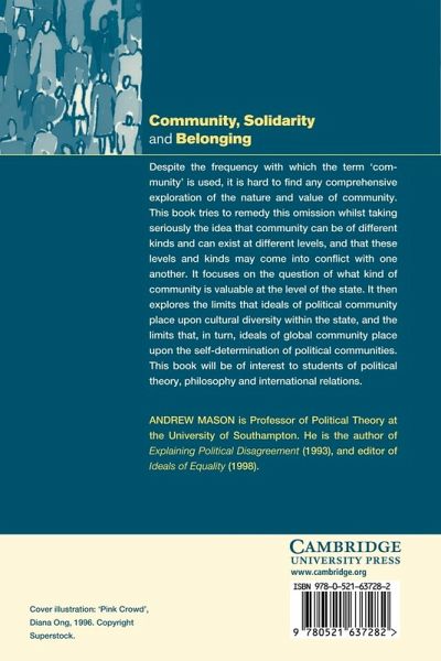 Despite the frequency with which the term 'community' is used, it is hard to find any comprehensive exploration of the nature and value of community. This book tries to remedy this omission whilst taking seriously the idea that community can be of different kinds and can exist at different levels, and that these levels and kinds may come into conflict with one another. It focuses on the question of what kind of community is valuable at the level of the state. It then explores the limits that ideals of political community place upon cultural diversity within the state, and the limits that, in turn, ideals of global community place upon the self-determination of political communities. This book will be of interest to students of political theory, philosophy and international relations.