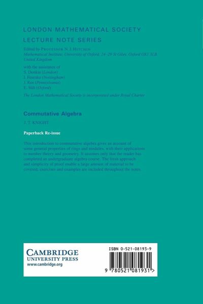 This introduction to commutative algebra gives an account of some general properties of rings and modules, with their applications to number theory and geometry.