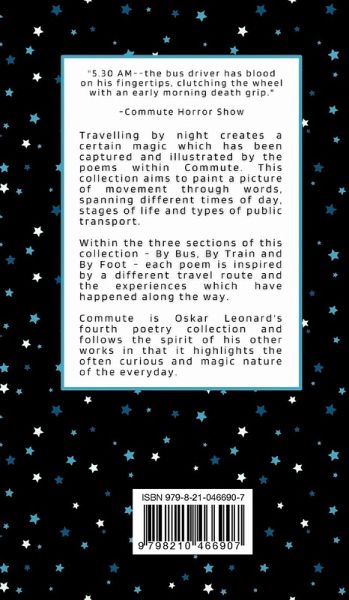 Travelling by night creates a certain magic which has been captured and illustrated by the poems within Commute. This collection aims to paint a picture of movement through words, spanning different times of day, stages of life and types of public transport. Includes an introduction by George Knott.