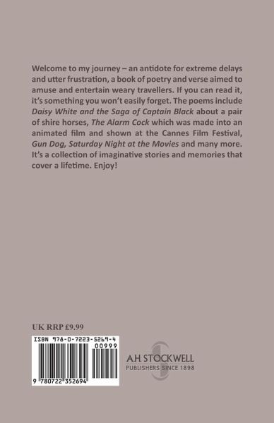 Welcome to my journey - an antidote for extreme delays and utter frustration, a book of poetry and verse aimed to amuse and entertain weary travellers. If you can read it, it's something you won't easily forget. The poems include Daisy White and the Saga of Captain Black about a pair of shire horses, The Alarm Cock which was made into an animated film and shown at the Cannes Film Festival, Gun Dog, Saturday Night at the Movies and many more. It's a collection of imaginative stories and memories that cover a lifetime. Enjoy!