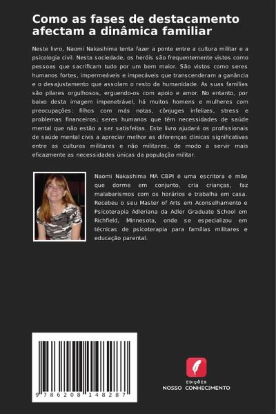 Neste livro, Naomi Nakashima tenta fazer a ponte entre a cultura militar e a psicologia civil. Nesta sociedade, os heróis são frequentemente vistos como pessoas que sacrificam tudo por um bem maior. São vistos como seres humanos fortes, impermeáveis e impecáveis que transcenderam a ganância e o desajustamento que assolam o resto da humanidade. As suas famílias são pilares orgulhosos, erguendo-os com apoio e amor. No entanto, por baixo desta imagem impenetrável, há muitos homens e mulheres com preocupações: filhos com más notas, cônjuges infelizes, stress e problemas financeiros; seres humanos que têm necessidades de saúde mental que não estão a ser satisfeitas. Este livro ajudará os profissionais de saúde mental civis a apreciar melhor as diferenças clínicas significativas entre as culturas militares e não militares, de modo a servir mais eficazmente as necessidades únicas da população militar.