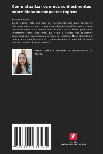 Resumo do livroCaros leitores, este livro pode ser interessante para quem deseja ser informado sobre as mais recentes investigações científicas sobre o tema dos bionanocompósitos anti-sépticos. Ficarão com as ideias gerais mais importantes sobre este tema, que cativa a atenção dos estudantes contemporâneos apaixonados pela área da medicina. Muito obrigado por dedicar a sua atenção a este livro, que é altamente recomendado tendo em conta os recentes avanços científicos.