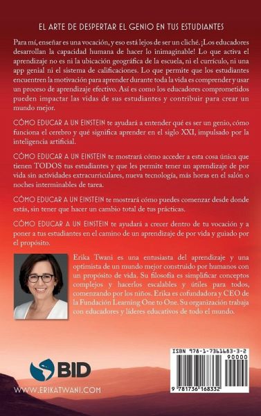 Para mí, enseñar es una vocación, y eso está lejos de ser un cliché. ¡Los educadores desarrollan la capacidad humana de hacer lo inimaginable! Lo que activa el aprendizaje no es ni la ubicación geográfica de la escuela, ni el currículo, ni una app genial ni el sistema de calificaciones. Lo que permite que los estudiantes encuentren la motivación para aprender durante toda la vida es comprender y usar un proceso de aprendizaje efectivo. Así es como los educadores comprometidos pueden impactar las vidas de sus estudiantes y contribuir para crear un mundo mejor. Cómo Educar a un Einstein te ayudará a entender qué es ser un genio, cómo funciona el cerebro y qué significa aprender en el siglo XXI, impulsado por la inteligencia artificial. Cómo Educar a un Einstein te mostrará cómo acceder a esta cosa única que tienen TODOS tus estudiantes y que les permite tener un aprendizaje de por vida sin actividades extracurriculares, nueva tecnología, más horas en el salón o noches interminables de tarea. Cómo Educar a un Einstein te mostrará cómo puedes comenzar desde donde estás, sin tener que hacer un cambio total de tus prácticas. Cómo Educar a un Einstein te ayudará a crecer dentro de tu vocación y a poner a tus estudiantes en el camino de un aprendizaje de por vida y guiado por el propósito. Esta obra es una traducción del libro original "Becoming Einstein's Teacher: Awakening the Genius in Your Students" realizada por el Banco Inter-Americano de Desarrollo (BID).