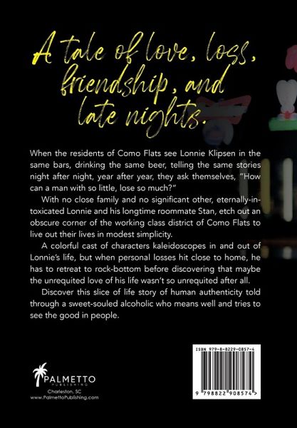 Discover a tale of human authenticity told through a sweet-souled alcoholic who means well and sees good in people. When the residents of Como Flats see Lonnie Klipsen in the same bar, drinking the same beer, telling the same stories, night after night, year after year, they ask themselves, "How can a man with so little lose so much?" With no close family and no significant other, Lonnie and his longtime roommate Stan, a widow and non-practicing alcoholic whose been on the on the wagon for many years, etch out an obscure corner of Como Flats to live their lives in modest simplicity. When personal losses hit close to home, Lonnie struggles to process the feelings, cultivate friendships, and search for a place of belonging and love. A colorful cast of characters kaleidoscopes in and out of Lonnie's life, proving the perceived unrequited love of his life wasn't so unrequited after all.