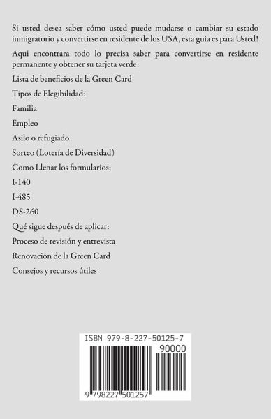 Si usted desea saber cómo usted puede mudarse o cambiar su estado inmigratorio y convertirse en residente de los USA, esta guía es para Usted! Aqui encontrara todo lo precisa saber para convertirse en residente permanente y obtener su tarjeta verde: Lista de beneficios de la Green Card Tipos de Elegibilidad: Familia Empleo Asilo o refugiado Sorteo (Lotería de Diversidad) Como Llenar los formularios: I-140 I-485 DS-260 Qué sigue después de aplicar: Proceso de revisión y entrevista Renovación de la Green Card Consejos y recursos útiles